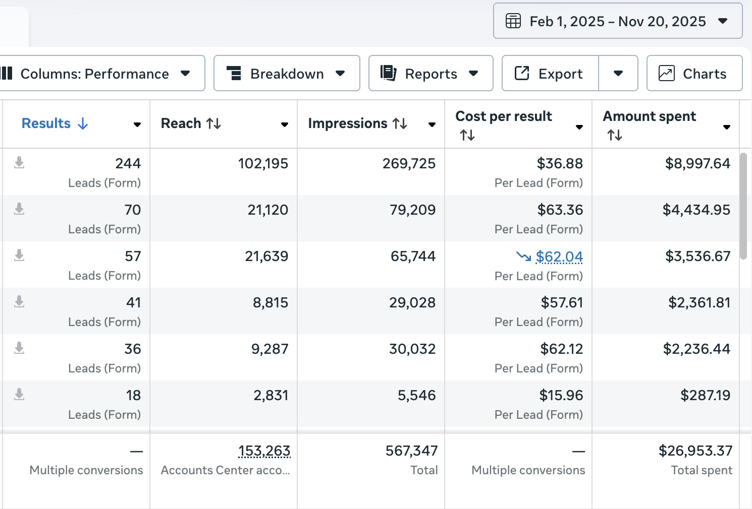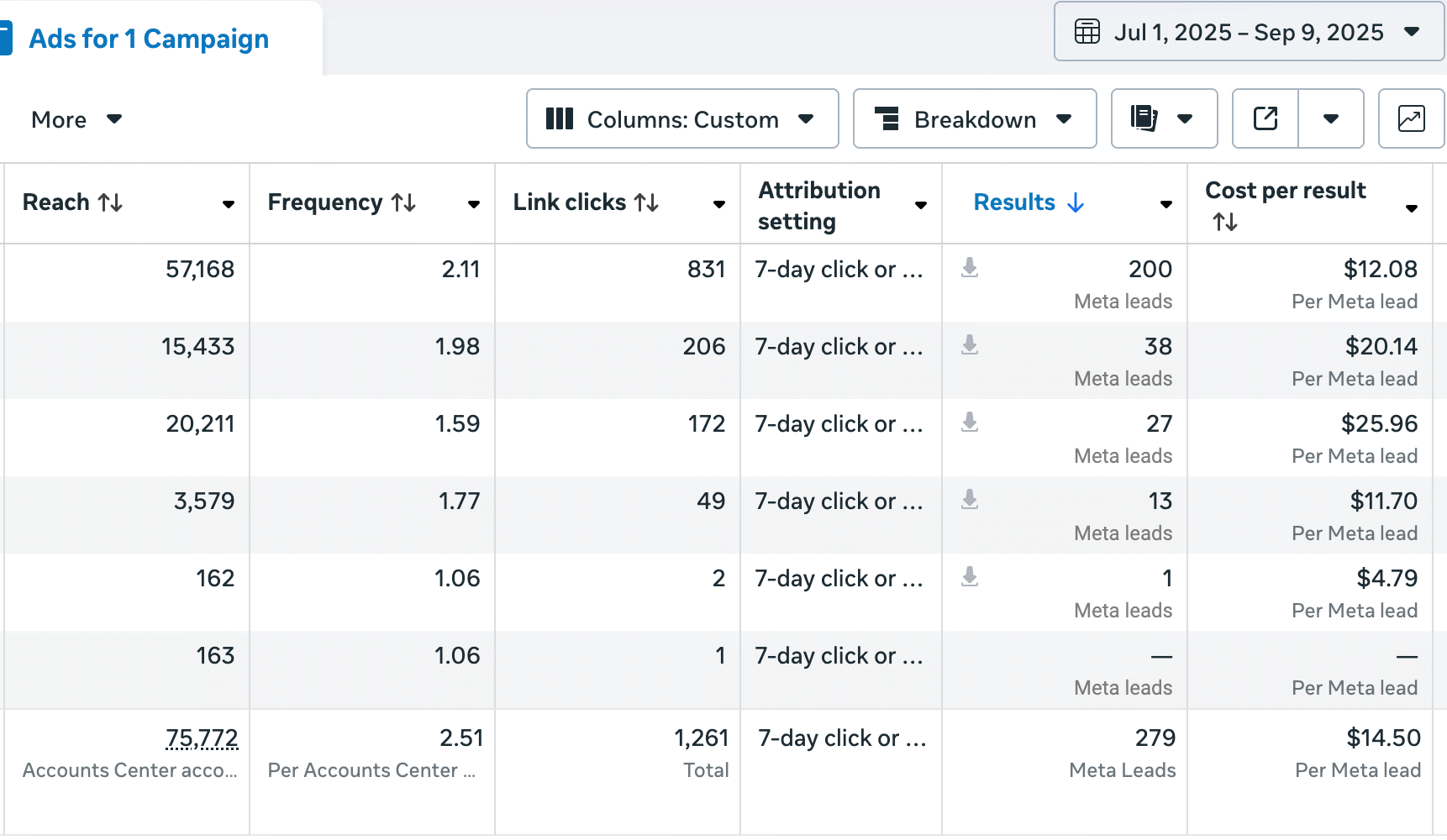 279 Leads | $14.5 CPL | 52 Sales