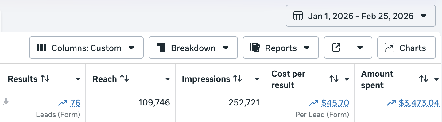 118 Leads | $8.57 CPL | 22 Sales