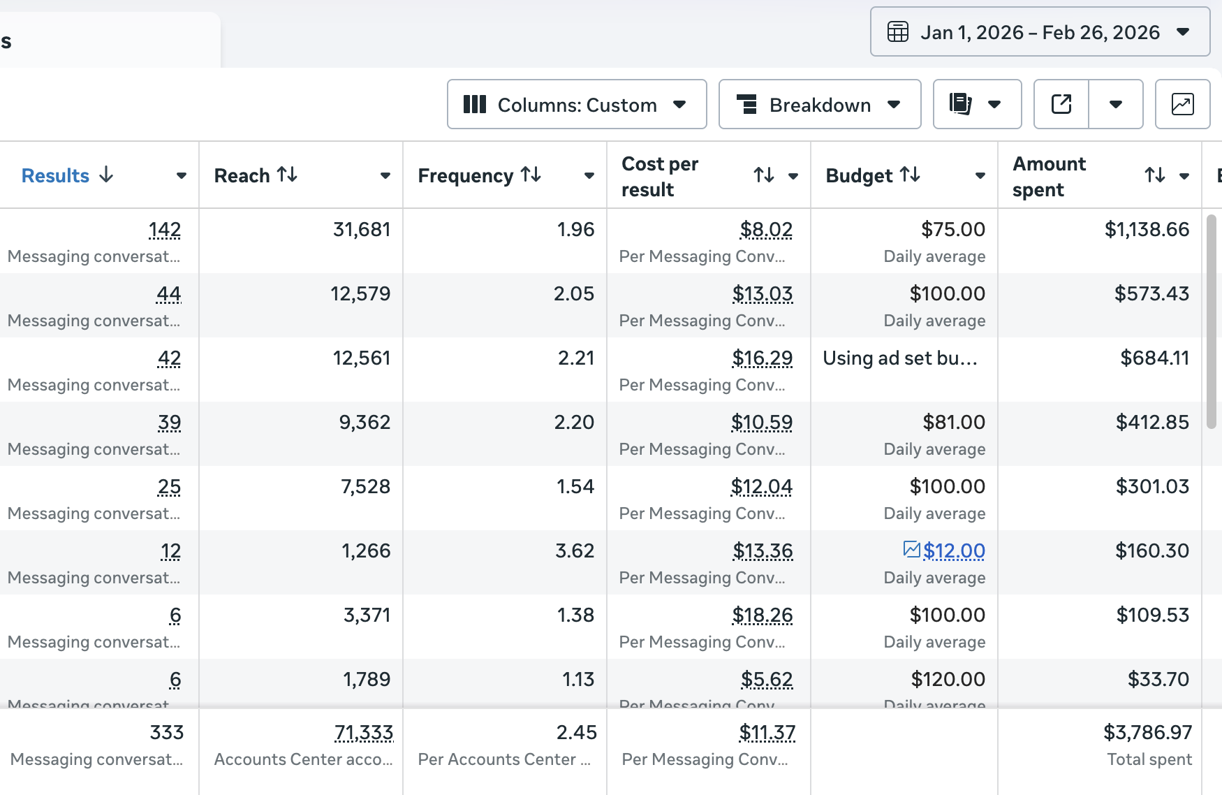 Monthly ad budgets managed