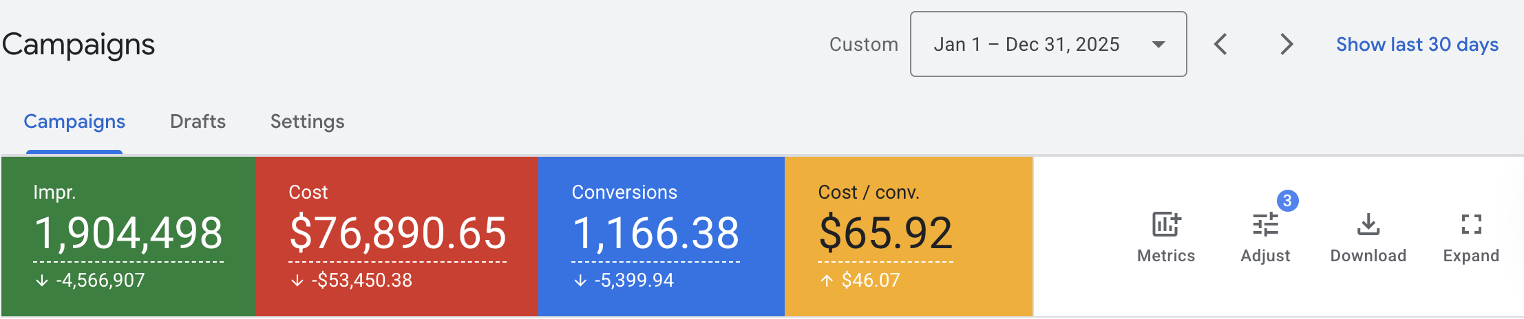 Same Client's Google Ads Results;